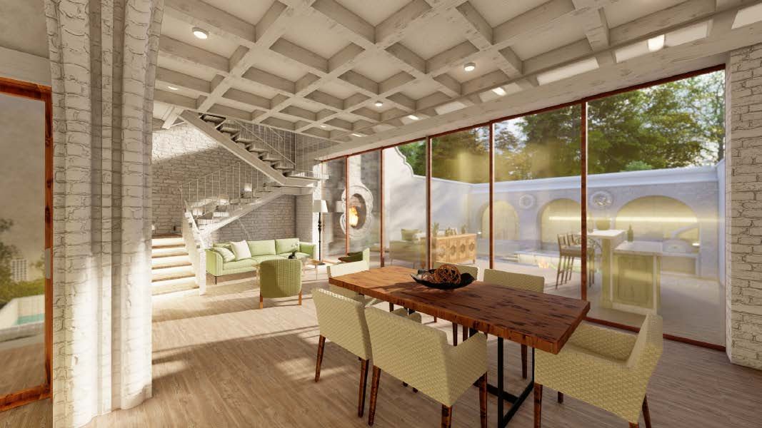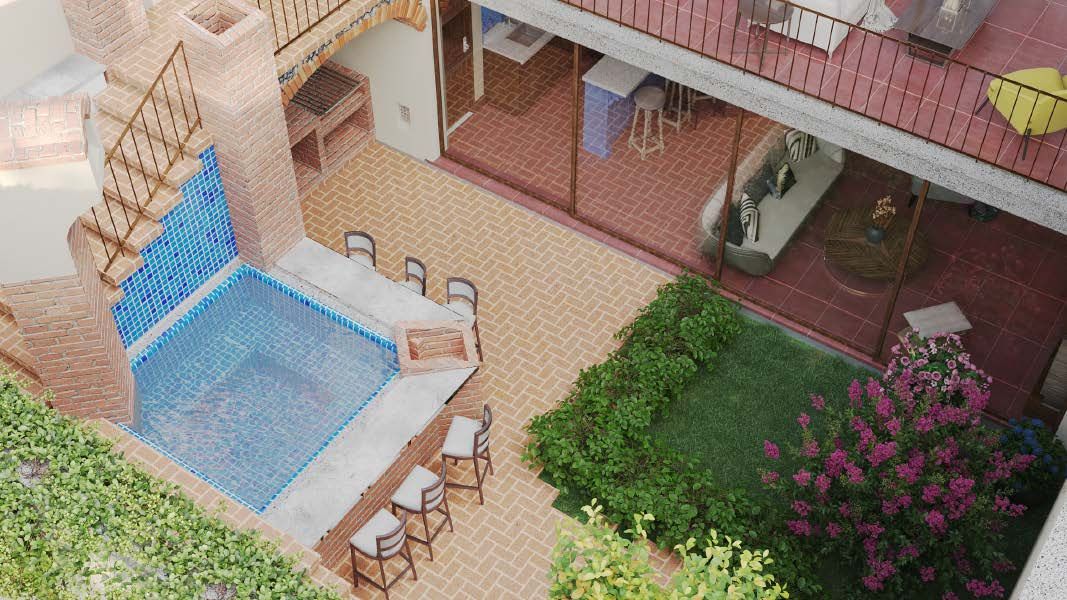 Inspired by French architectural style, Home Gallico features distinctive elements that give it its character, including a chimney in the double-height outdoor social area, elegant garden arches, and a defined design line with white finishes and green accents.